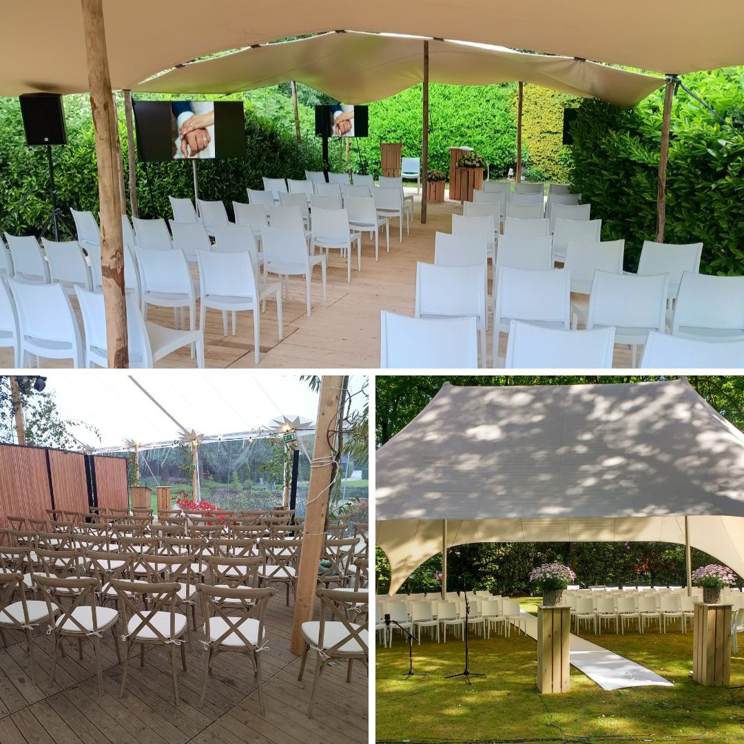 Het verhuren van materiaal voor feesten en evenementen is onze corebusiness. Een ceremonie in open lucht of op locaties zonder eigen materiaal? Geen probleem, dan zijn wij de gepaste leverancier.